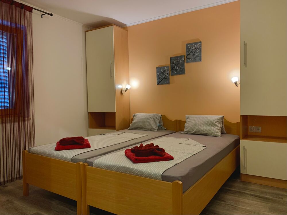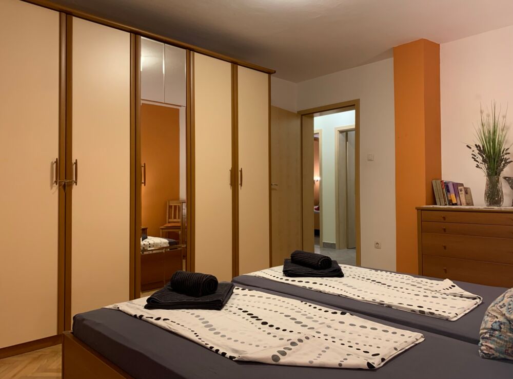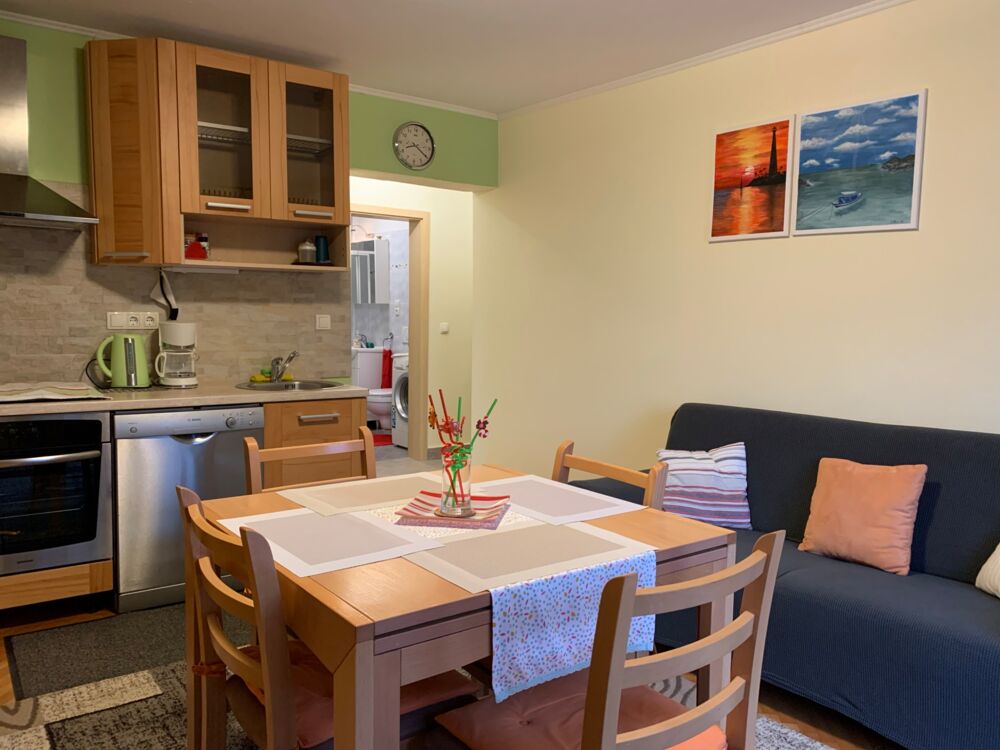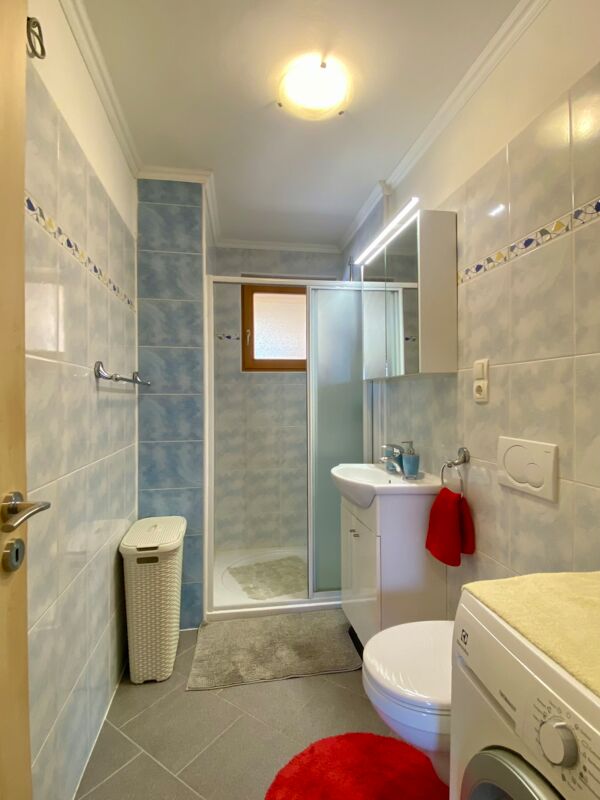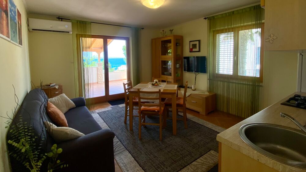 Apartment 5 is on the ground floor and is for 4 people and has approximately 50 m², two bedrooms with a king sized bed for two, a couch, a washing machine, a completely equipped kitchen: ceramic hob, oven, fridge-freezer, dishwasher, microwave, extractor hood, toaster, coffee maker, electric kettle, SAT-TV, air conditioning, bathroom, private entrance, terrace with view (approximately 55 m²) and a outdoor grill.
